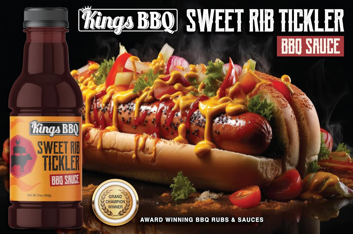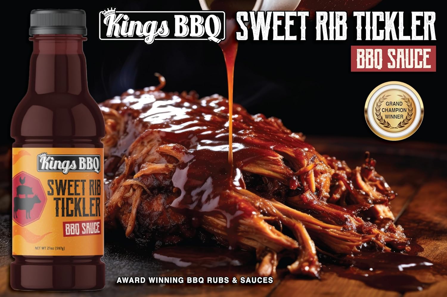 Kings BBQ Sweet Rib Tickler Sauce – This is a delicious, sweet sauce that is designed to perk up your taste buds while allowing the meat to shine through. Rib Tickler has been used on Pork, Chicken and Beef. Anything from your pulled pork sandwich to competition ribs to yard bird. Take your BBQ to the next level with Kings BBQ Rib Tickler.